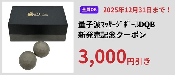 新発売を記念して量子波マッサージボールDQBのご注文で、3,000円OFFになるクーポンです。