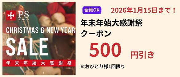 年末年始大感謝祭のキャンペーン商品10,000円(税抜)以上ご購入でご利用いただける500円OFFクーポンです。