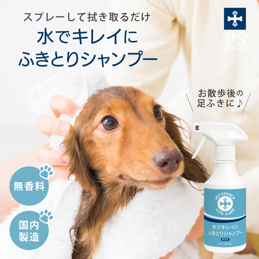 しっかりと汚れを落とす力がありながら、「水」であるため、肌の敏感なワンちゃんにも安心してお使いいただけます。