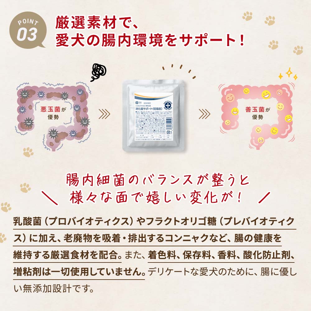 【Point 3】厳選素材で、愛犬の腸内環境をサポート!