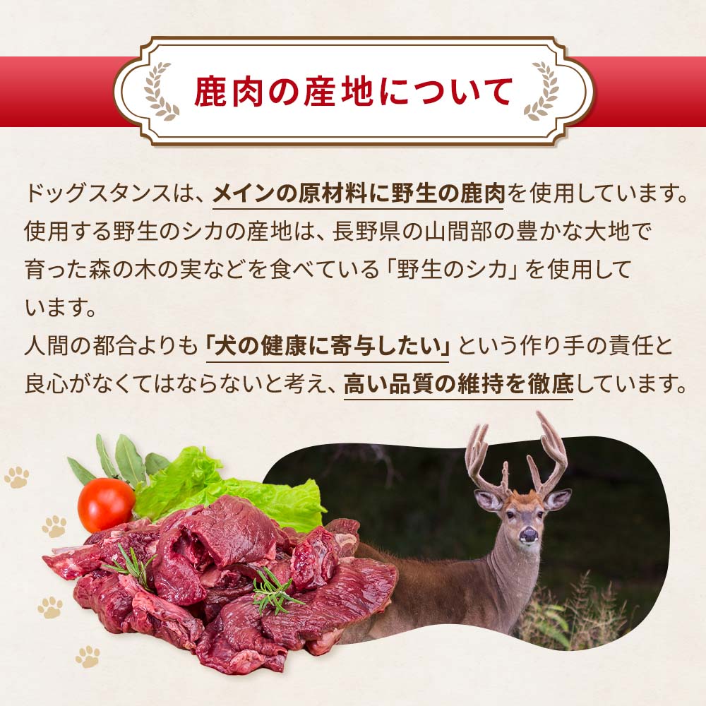 犬の祖先であるオオカミが好んだ鹿肉は、アレルゲンになりにくく、高タンパク・低脂肪で犬にとって最適なお肉です。