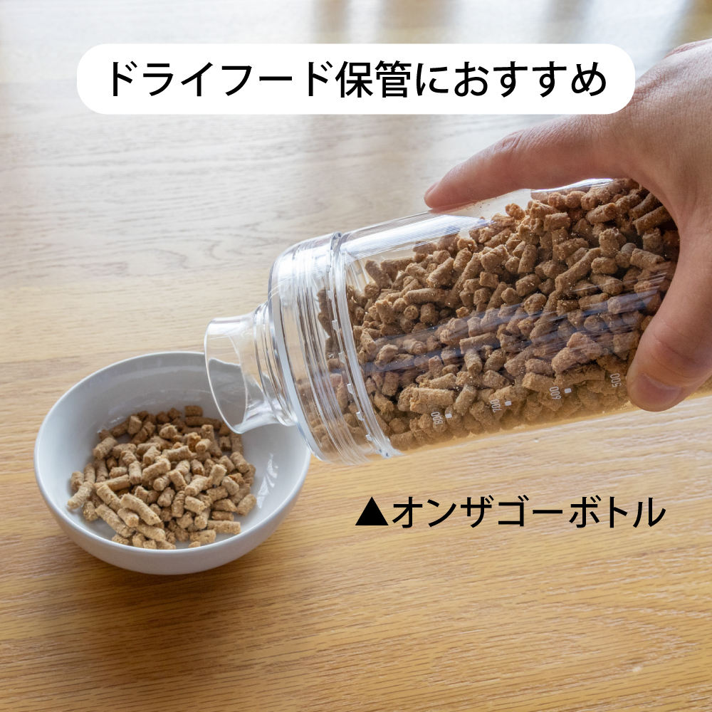 パッキン採用で気密性が高く、ドライフードの小分けや1回で使い切れないウェットフードなどの保存にお勧めです。メモリがついているので内容量がわかりやすく、縦型でスクリュータイプなので開閉も楽にできます。
