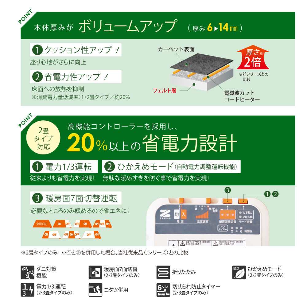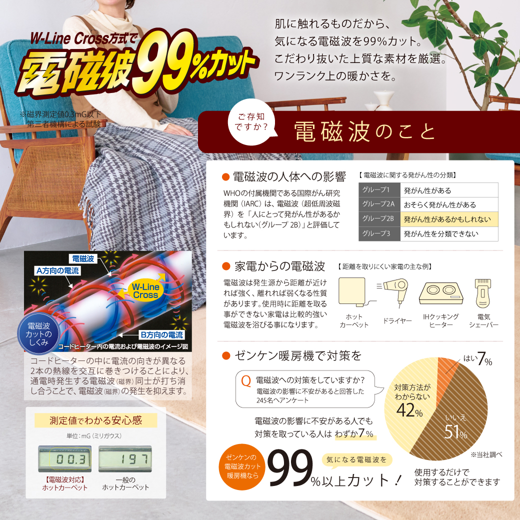 W-Line Cross方式で電磁波(磁界)を相殺し99%以上カット 直接触れる暖房だから、気になる電磁波をカット!