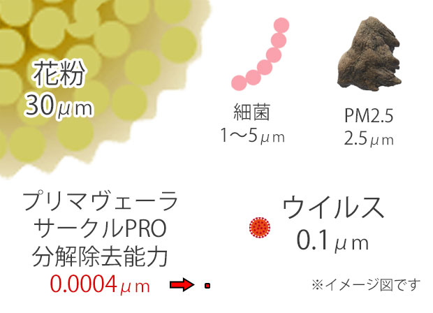 『プリマヴェーラサークルPRO』の除去範囲は、なんと0.0004μm!