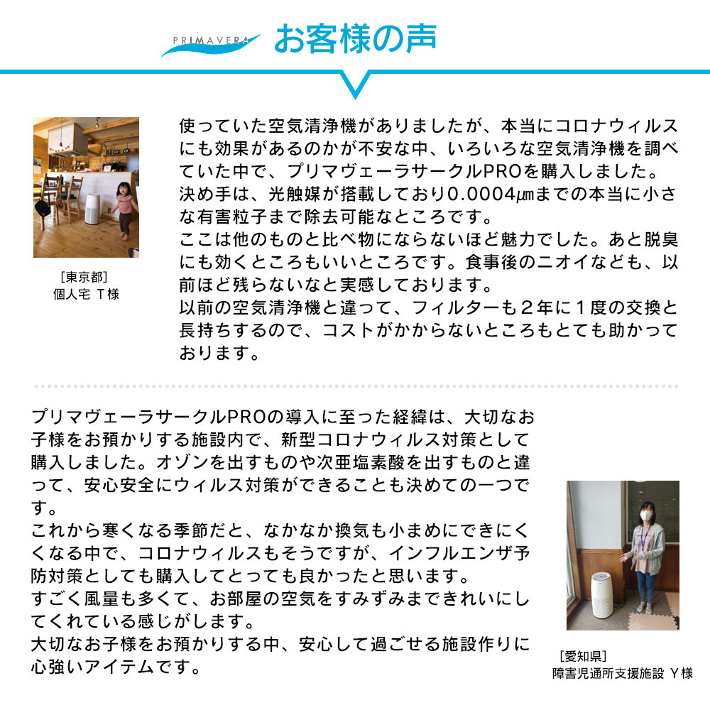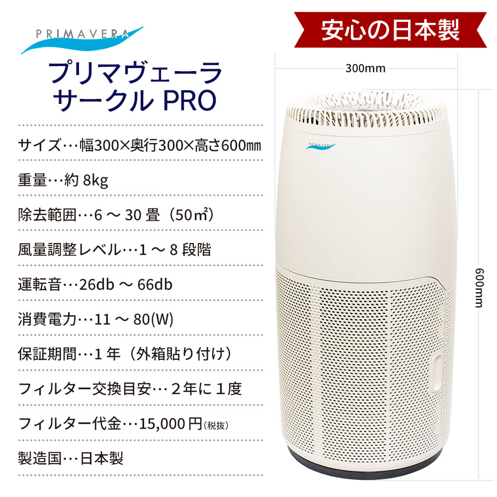 他社空気清浄機を使っておりましたが、毎日コロナウィルスの情報が飛び交っている中、我が家にも高性能の空気清浄機を探しておりました。 色々調べてこの「プリマヴェーラサークルプロ」にたどり着きました。