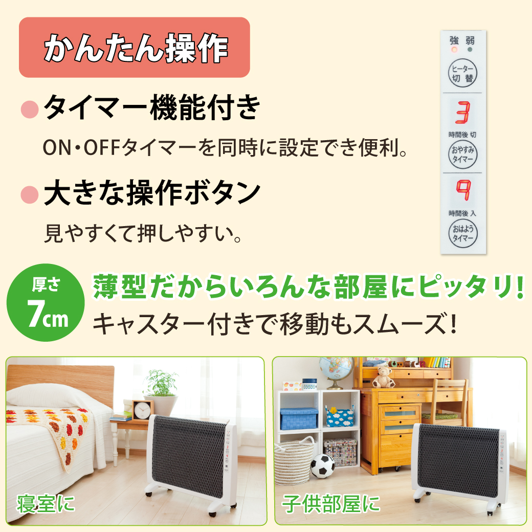 - タイマー・・・おはよう(ON)タイマー3〜9時間(1時間単位)